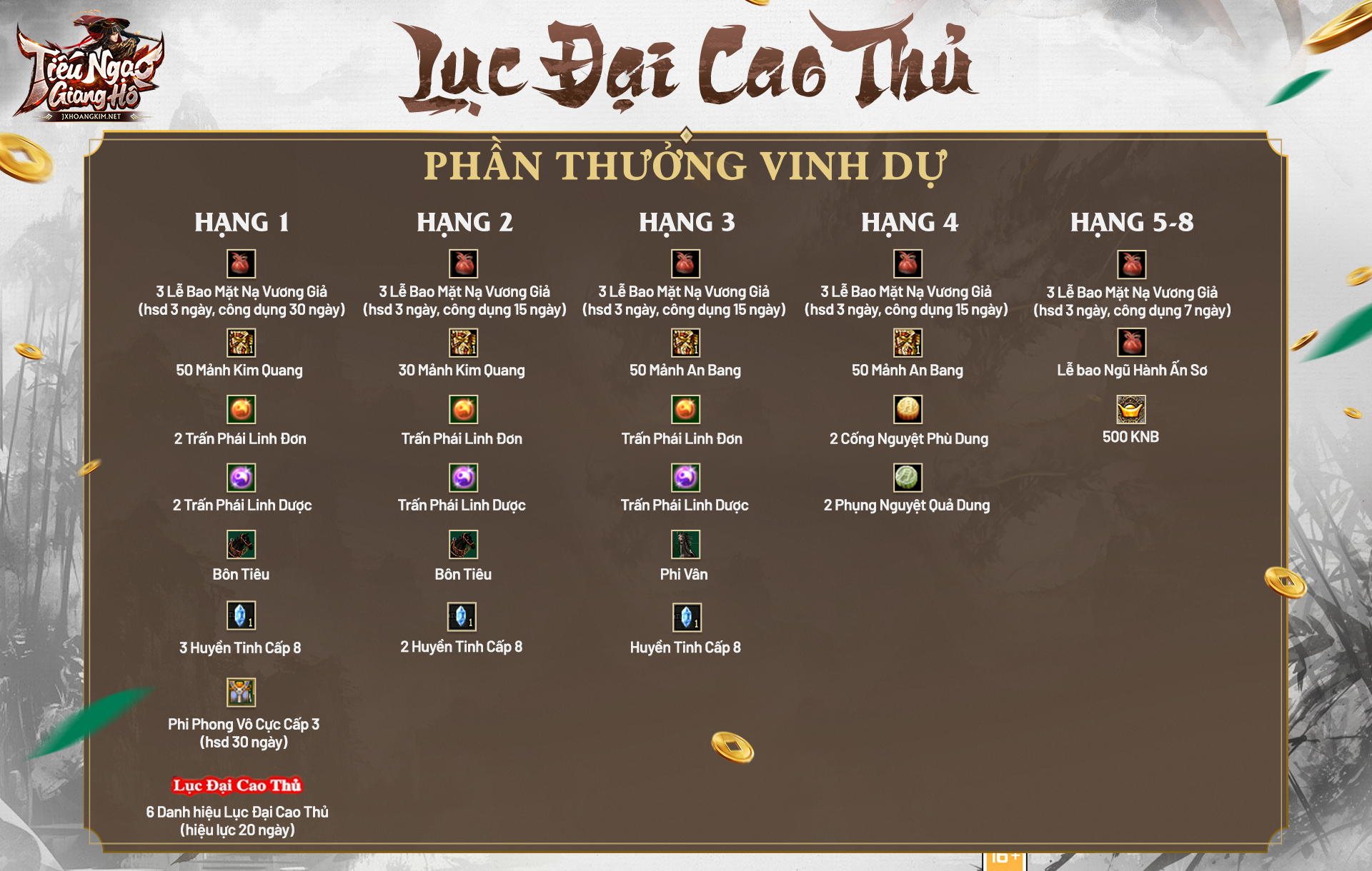 Giải đấu Lục Đại Cao Thủ liên máy chủ diễn ra hằng tháng tại JX Tiếu Ngạo, đây là dịp để các chiến đội đến từ các hùng bang so tài võ nghệ.