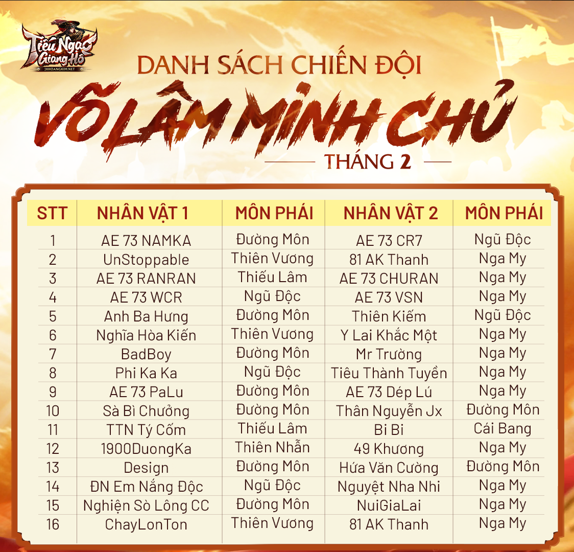 [Chiến Quốc] Võ Lâm Minh Chủ Tháng 2