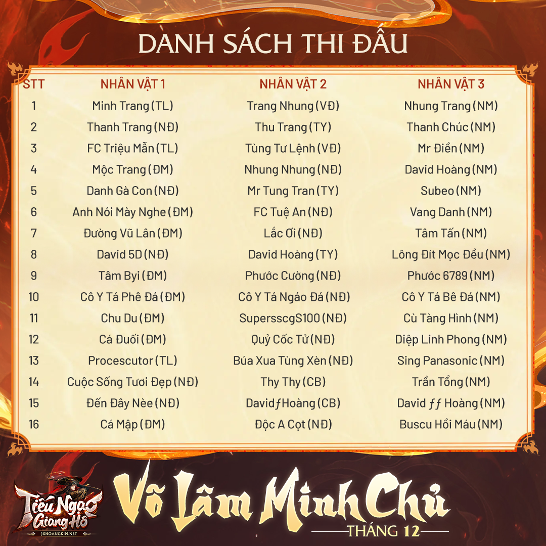 [Long Lân] Võ Lâm Minh Chủ Tháng 12
