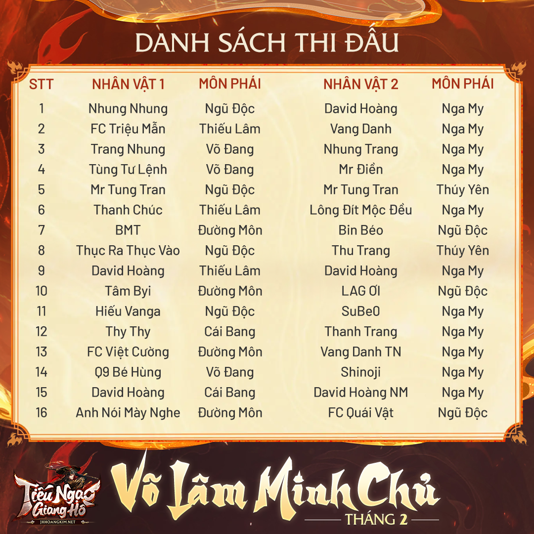 ⚔ Danh sách thi đấu