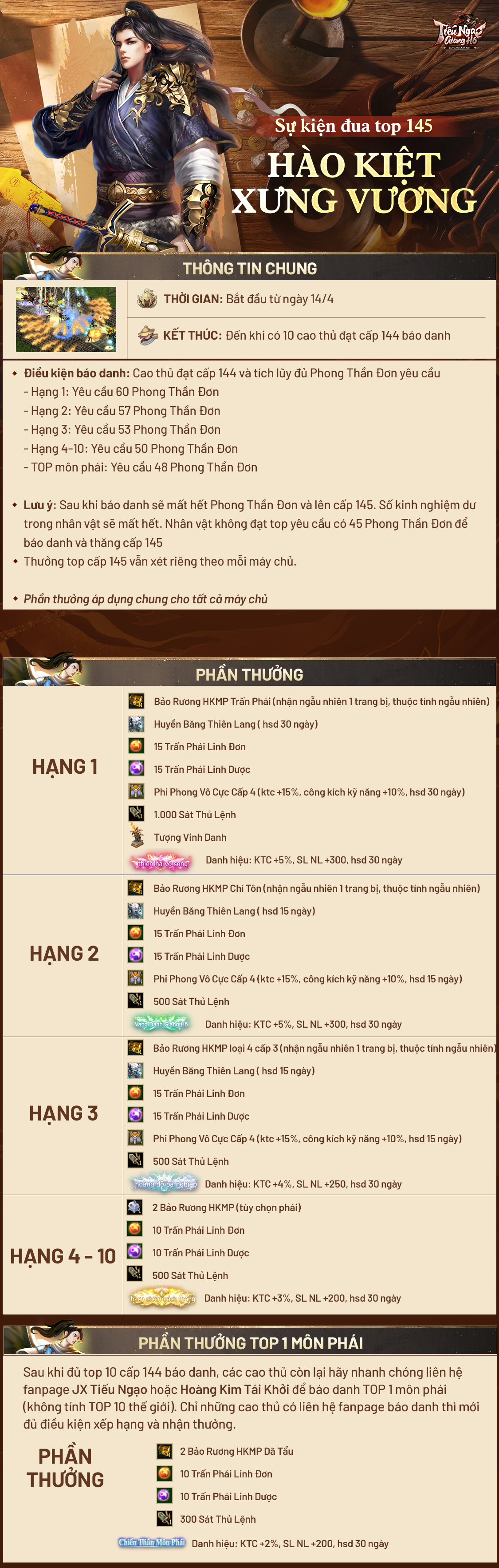 [Sự Kiện] Thưởng Top Cấp 145